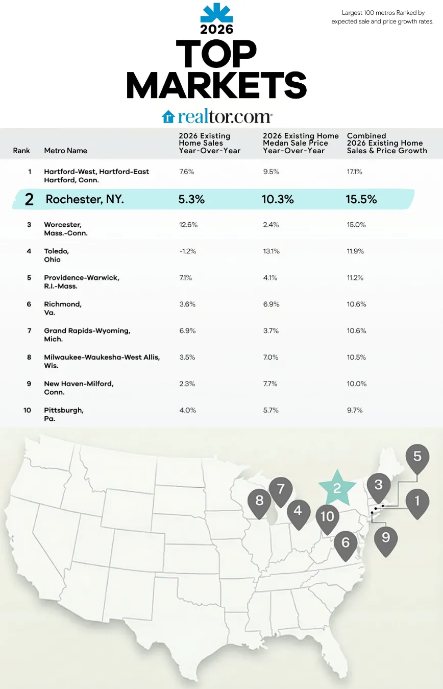 15.5% combined growth, placing Rochester just behind Hartford and ahead of markets like Worcester, Providence, and Richmond